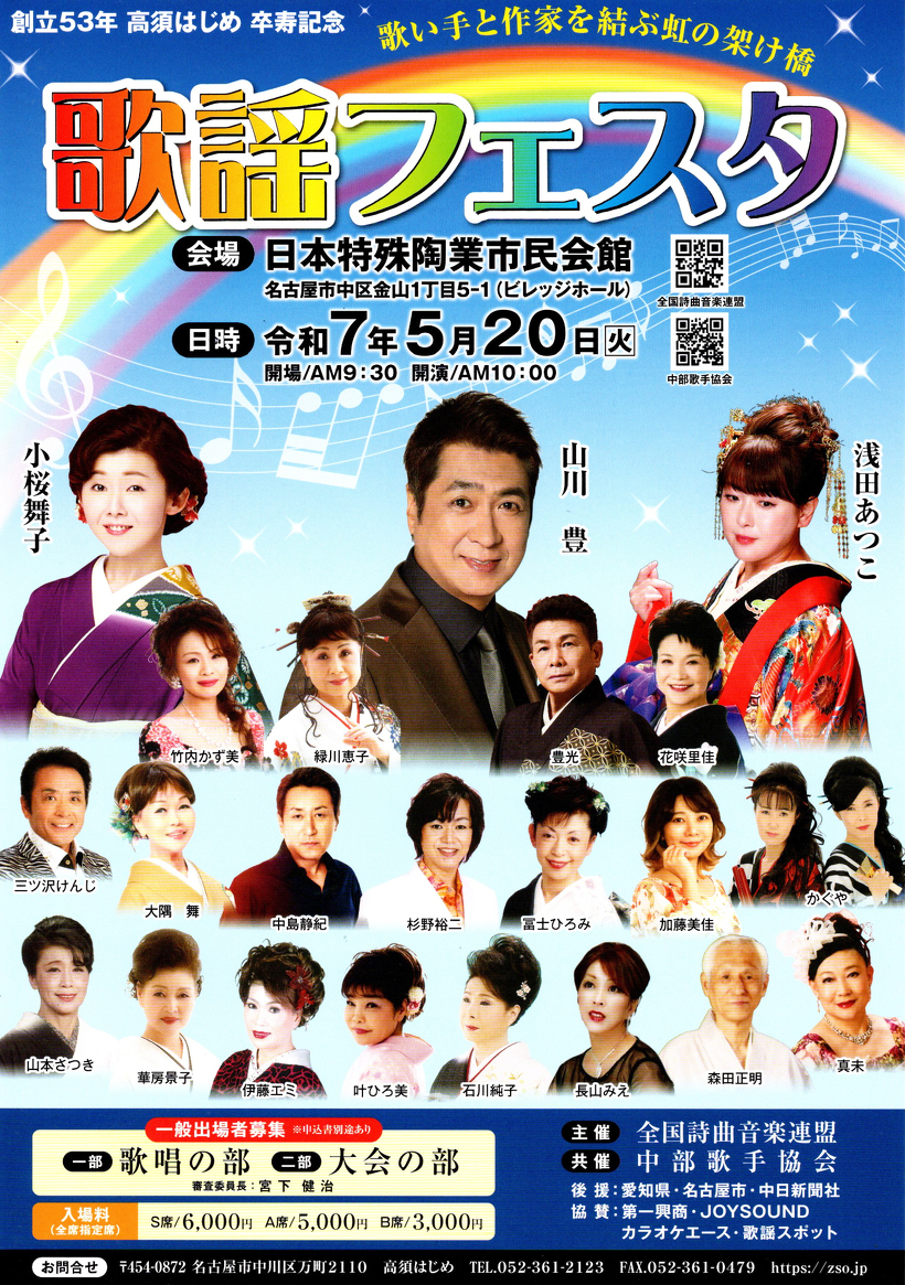 2025歌謡フェスタ のお知らせ 令和7年5月20日(火) Niterra日本特殊陶業市民会館