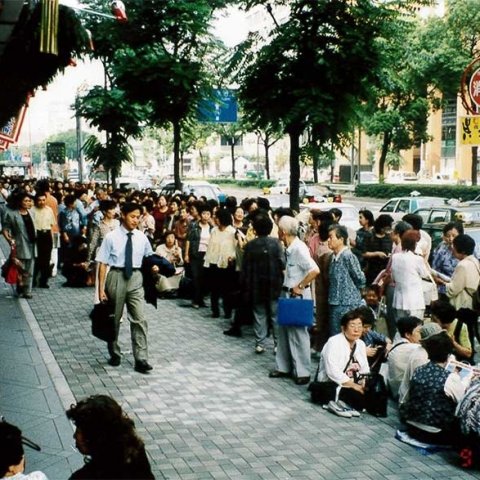 長蛇の行列 開場入り口付近 朝7時から4時間待ち 頭が下がります。 入...